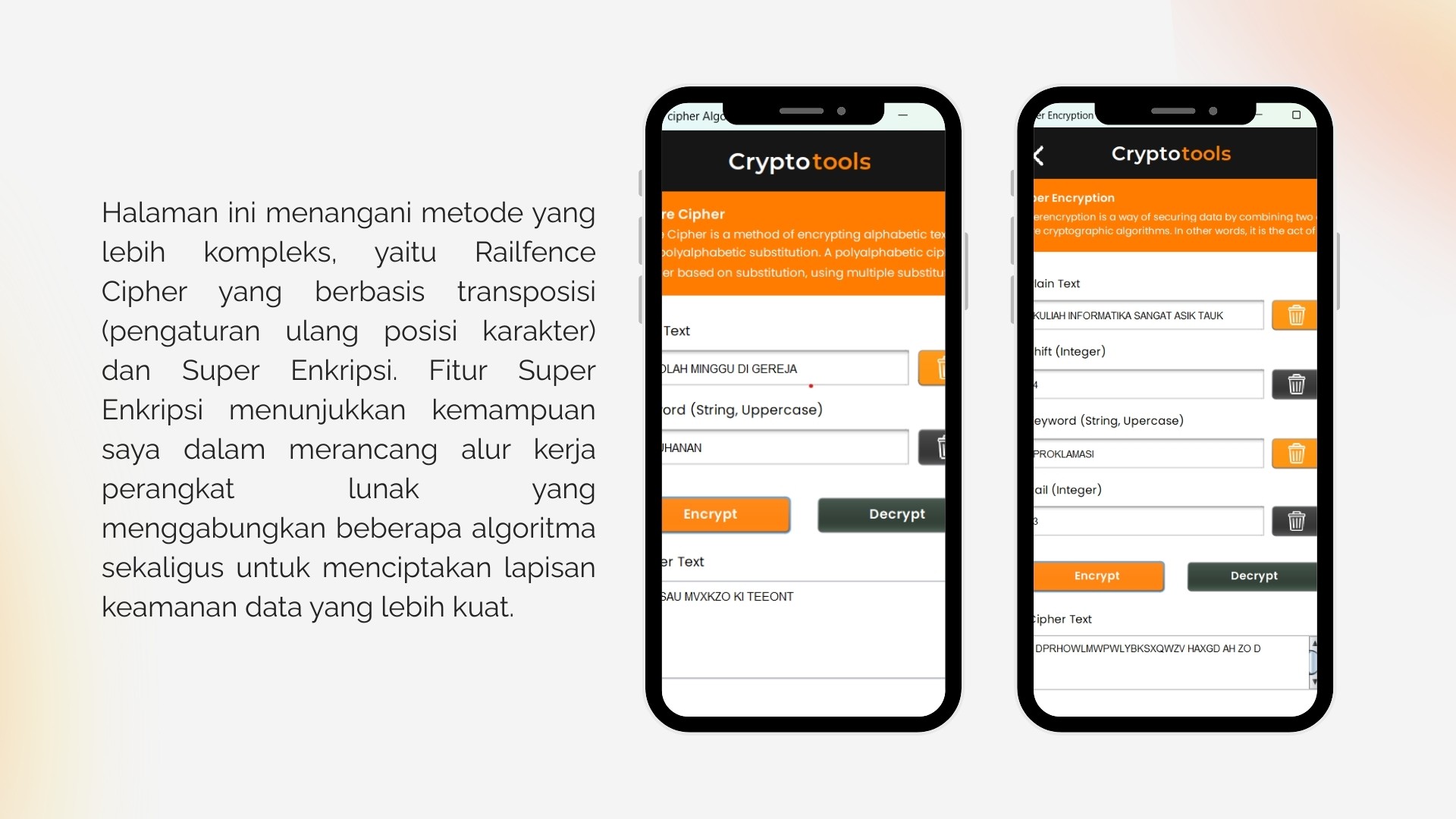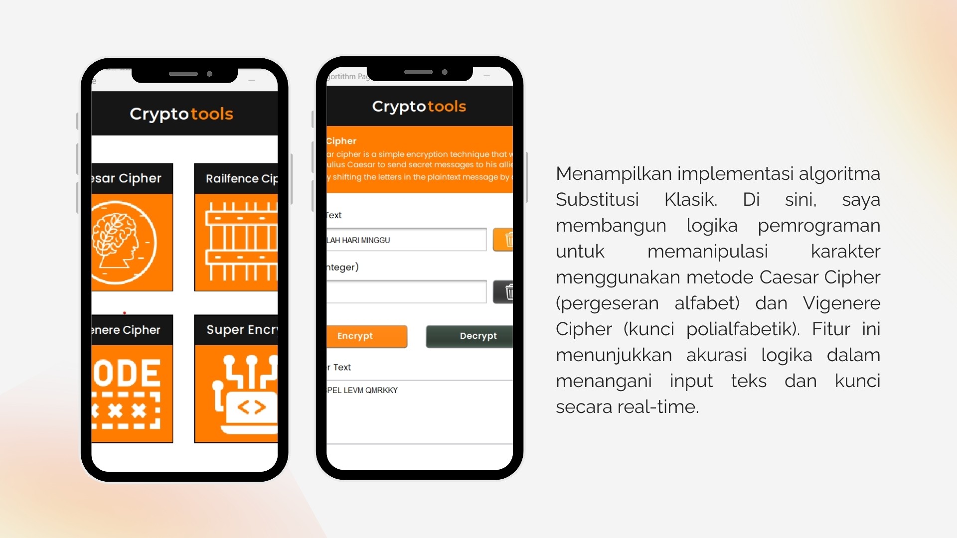 This project aims to provide an educational and functional utility for data security through classical cryptographic algorithms. Cryptools is designed as a mobile first tool for private text encryption, requiring precise algorithmic logic to ensure zero data loss during the decryption process.