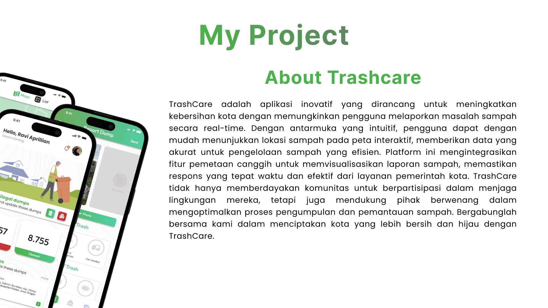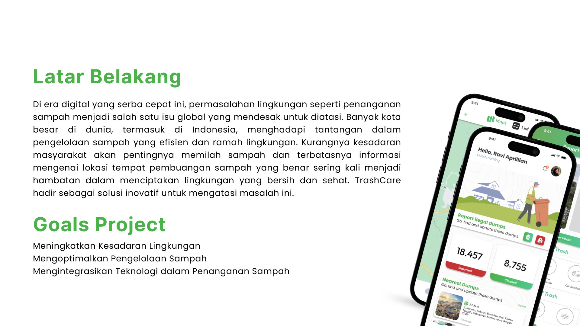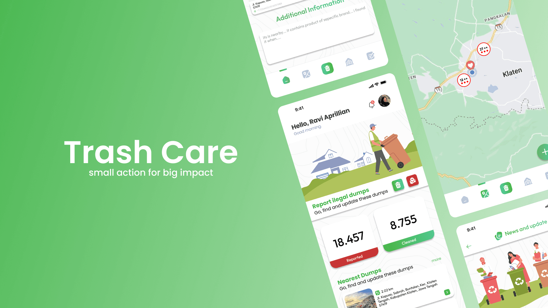 Trash Care is a digital reporting platform developed to address waste management challenges in Yogyakarta. The project focuses on providing a transparent, real-time system to increase active community participation in environmental cleanliness through accessible and user-friendly technology.